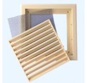 Вентиляционная решетка МЦ изготавливается из оцинкованной стали. Имеет наклонные жалюзи и антимоскитную сетку для защиты от насекомых. Сетка устанавливается в специальном углублении